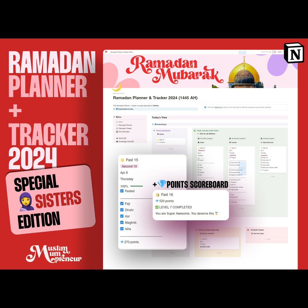 Looking to organize your Ramadan schedule effectively? Get the Ramadan Planner + Tracker 2024 now! Hit your goals, remove overwhelm, and experience a peaceful Ramadan as you achieve clarity and transformation in just 30 days. FREE for first 50 copies, $79 after that. Grab it before its gone.